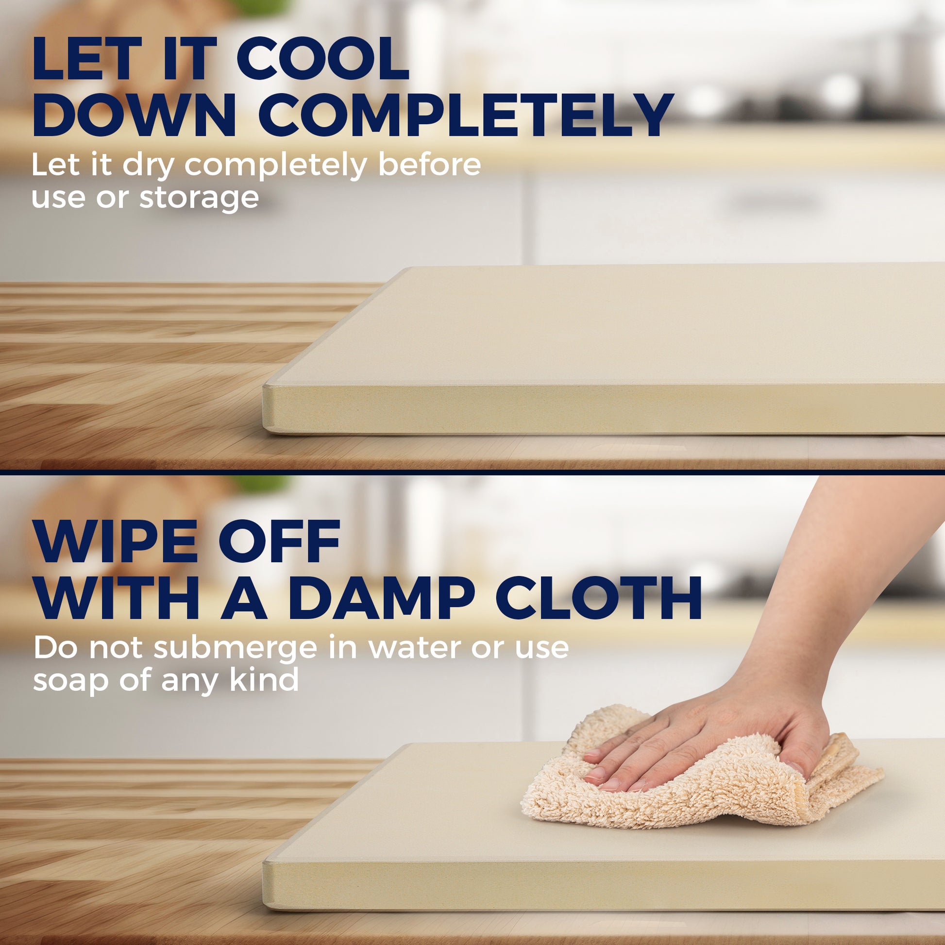 Melanie Malone This pizza stone is a great addition to our kitchen. It bakes pizzas perfectly and is so easy to clean.