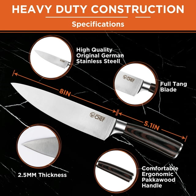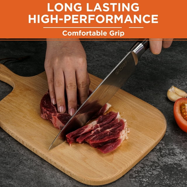 - 🎁 A GIFT TO REMEMBER - Designed for chopping, mincing, slicing, and dicing, this is definitely something that anyone interested in cooking would like to have. The 8"Chef kitchen knife is an ideal gift for any occasion, including a wedding, birthday, corporate gifting, to show someone special that you love them and thinking about them.