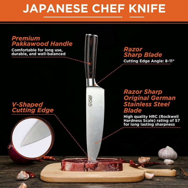 Commercial Chef Japanese 8-inch Chef Knife - Pakkawood Handle