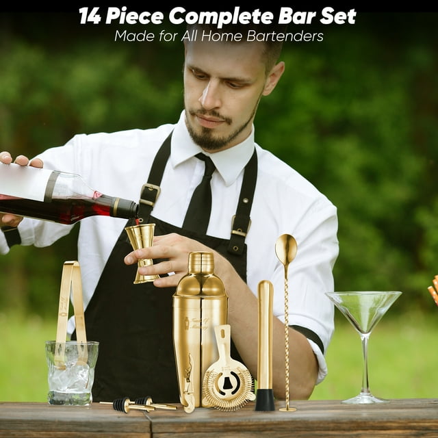 - MAKE COCKTAILS LIKE A PRO – Create any kind of drinks you want and craft the best cocktails right at home, with this shaker set. Whether you're a mixologist, or just like to learn, practice, and perform the art of mixing drinks – this mixology bartender kit is the right for you!